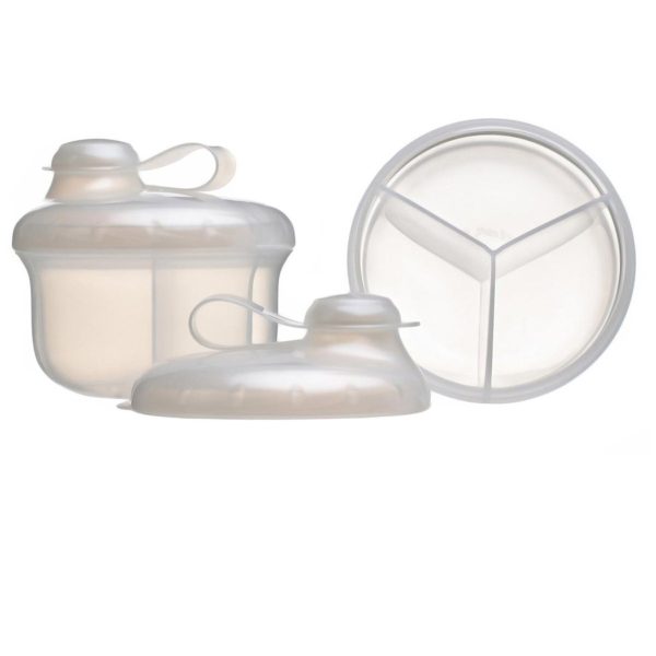 Simplifica la alimentación de tu bebé con el práctico y compacto Dispensador de Fórmula de 3 Reparticiones de Nuby.